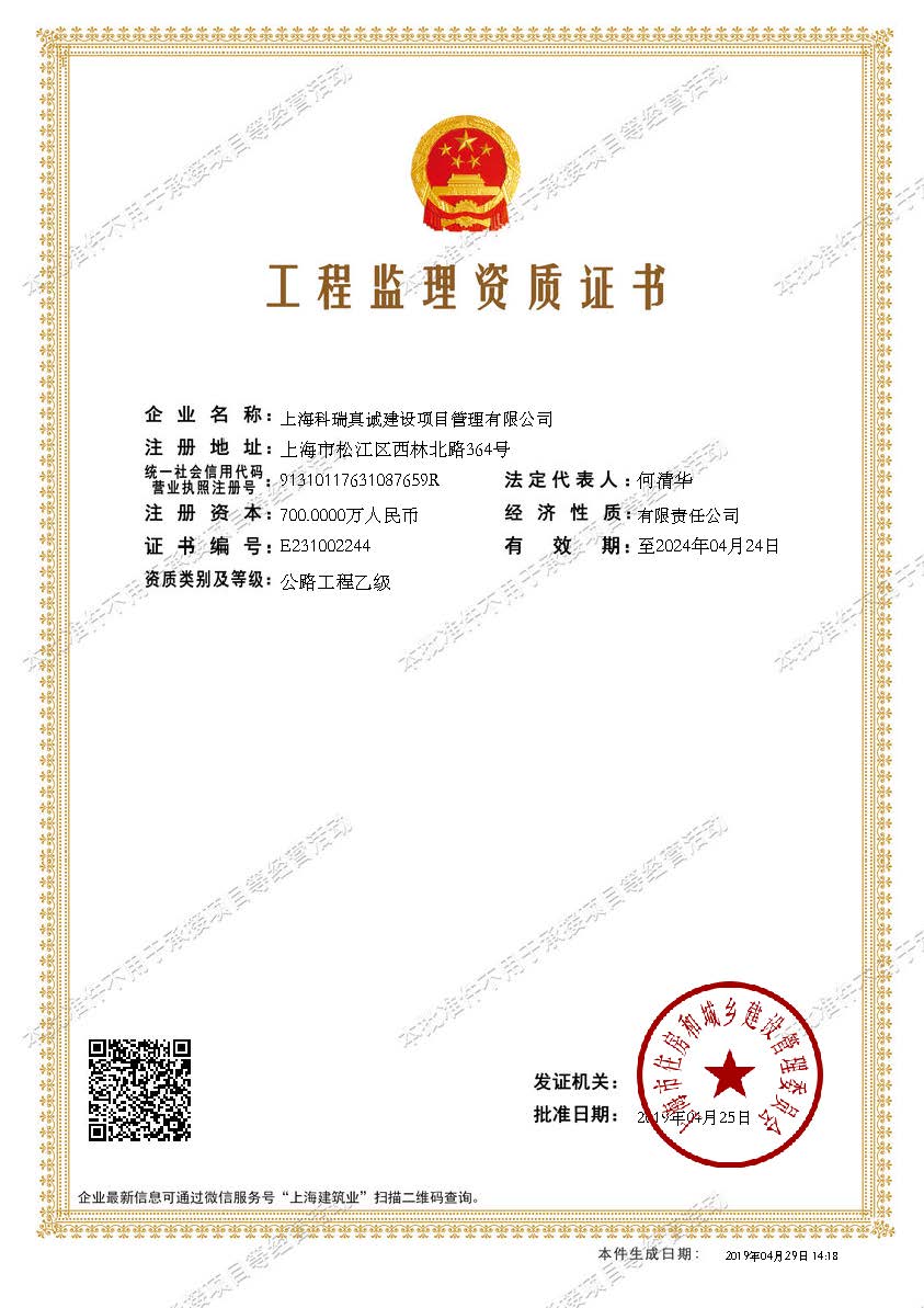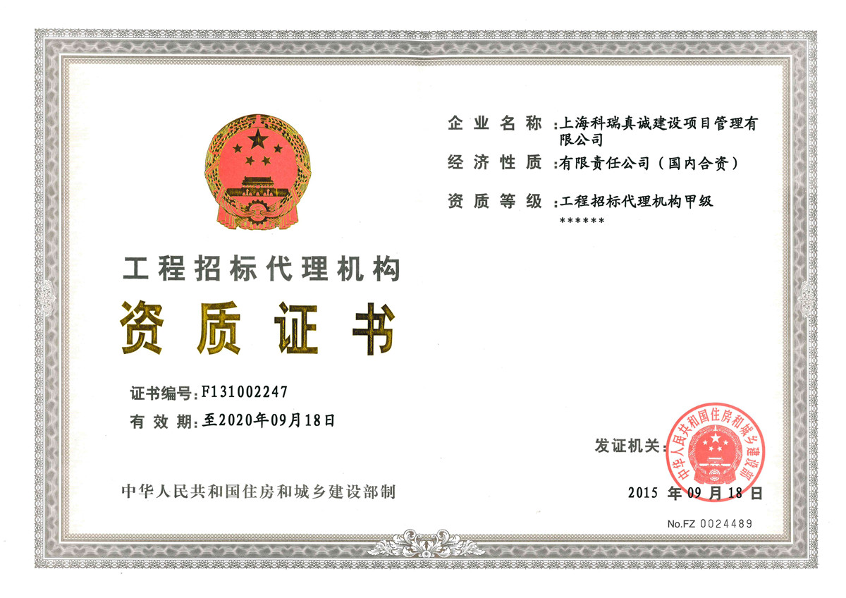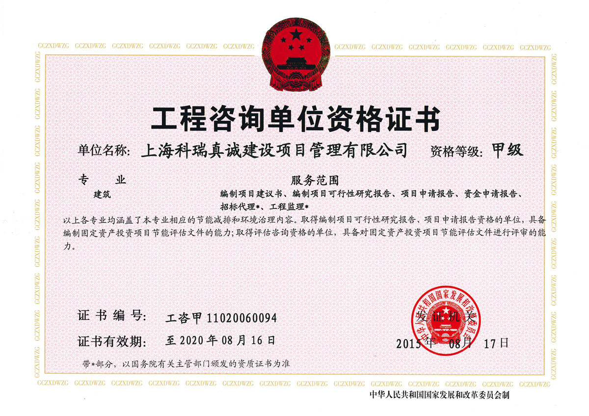 工程咨询单位(建筑、市政公用工程)甲级资信证书