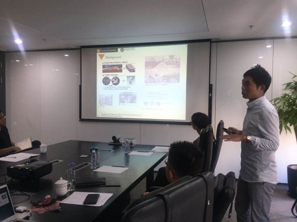 随后会议开始正式汇报阶段。王教授首先对其团队与其所从事的研究方向进行了介绍。王教授作为澳洲工程管理领域的杰出学者,研究的领域横跨6个方向,从建设管理,到物流、道路优化均有涉及。让在场的与会者对研究方向有了更广阔的认识。同时王教授列举了众多参与过的案例,讲解了目前的科研成果。与会者就一些科研方面的问题与王教授进行了简短的讨论。
