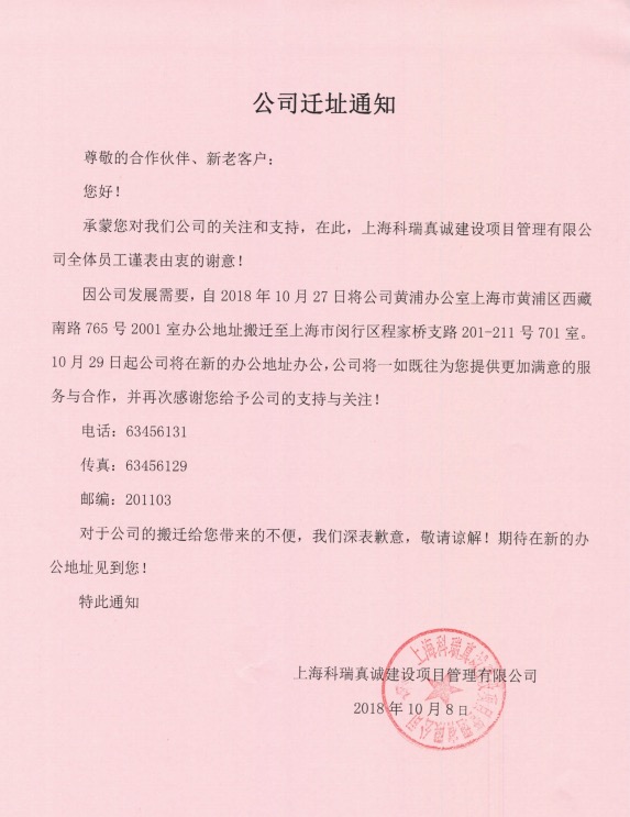 公司黄埔办公室迁址通知