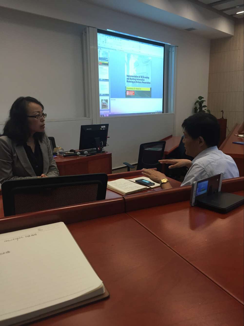 2016年6月27日星期一上午,应同济大学复杂工程管理研究院邀请,美国伊利诺伊州立大学谢海燕博士(Dr. Haiyan Xie)来院讲学。首先,谢博士以“Simulation and Analysis of Large-Scale Stadium Evacuation Plans Using Multi-Agent and BIM Technologies (利用多智能体系统和BIM技术对大型体育场馆进行疏散仿真与分析)”为题,为大家带来了一场精彩的前沿学术讲座。随后,她介绍了BIM技术在历史建筑保护和装配式建筑方面的工程应用和研究成果(Implementation of 3D Scanning and Building Information Modeling in Historic Preservation, Feasibility Study of Assembled Residential Buildings)。最后,大家展开了BIM技术的讨论与交流。讲座由蒋凤昌博士主持,同济大学在读博士、硕士研究生、科瑞真诚建设项目管理有限公司BIM技术事业部与品牌事业部员工一同聆听了讲座。