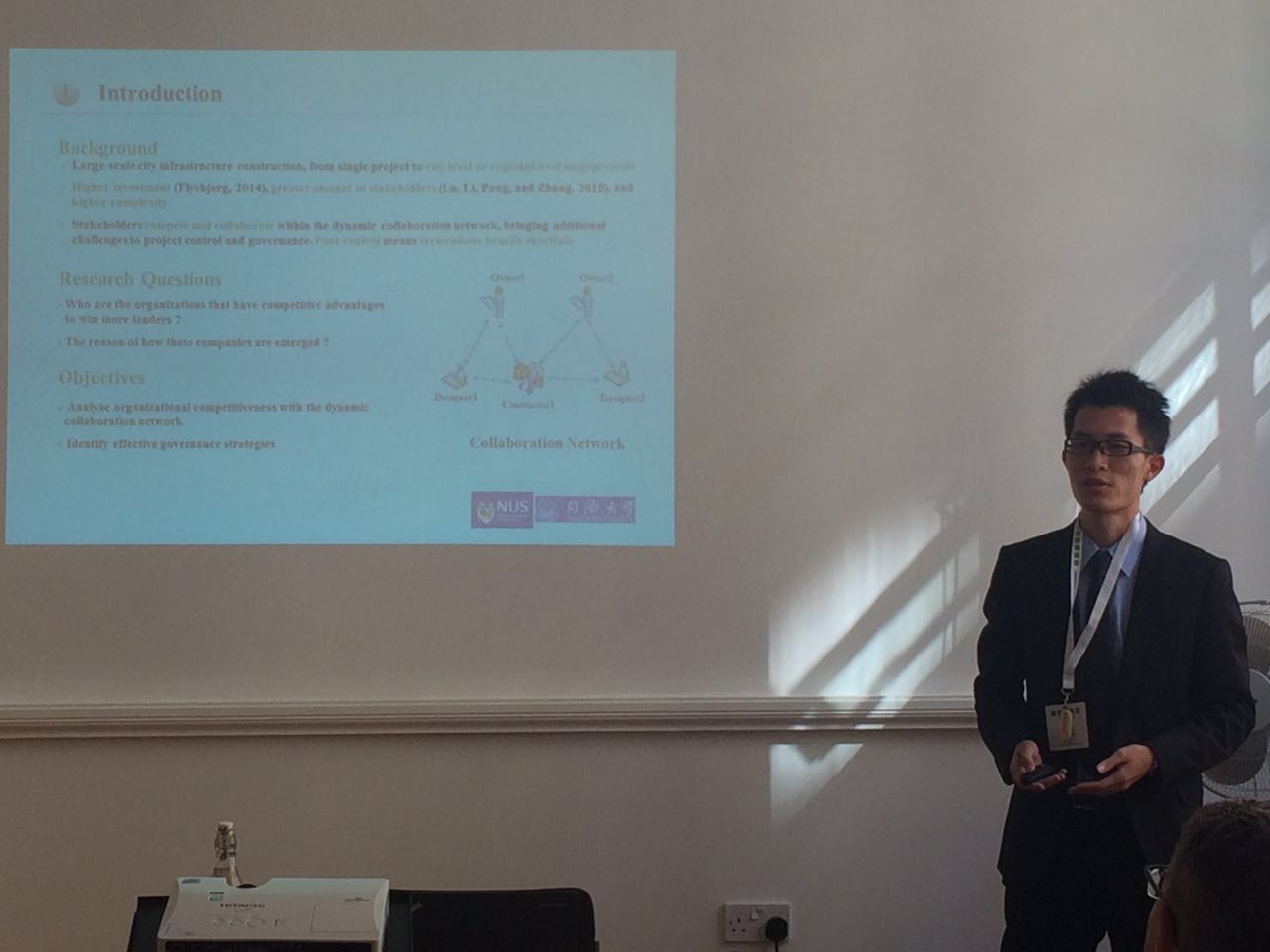 2016年9月5日至7日,复杂工程管理研究院硕士研究生庞达赴英国曼彻斯特参加了Association of Researchers in Construction Management (ARCOM)2016年年会,并在大会上做了重大工程合作网络演化及组织竞争力研究的专题报告。