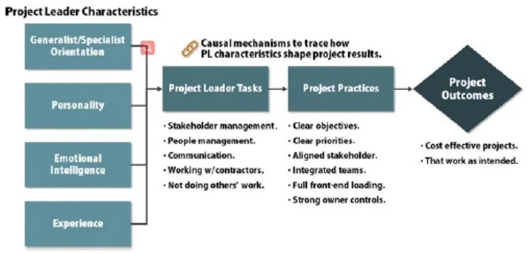 成功的重大工程领导和项目成功之间的关系如下图:
