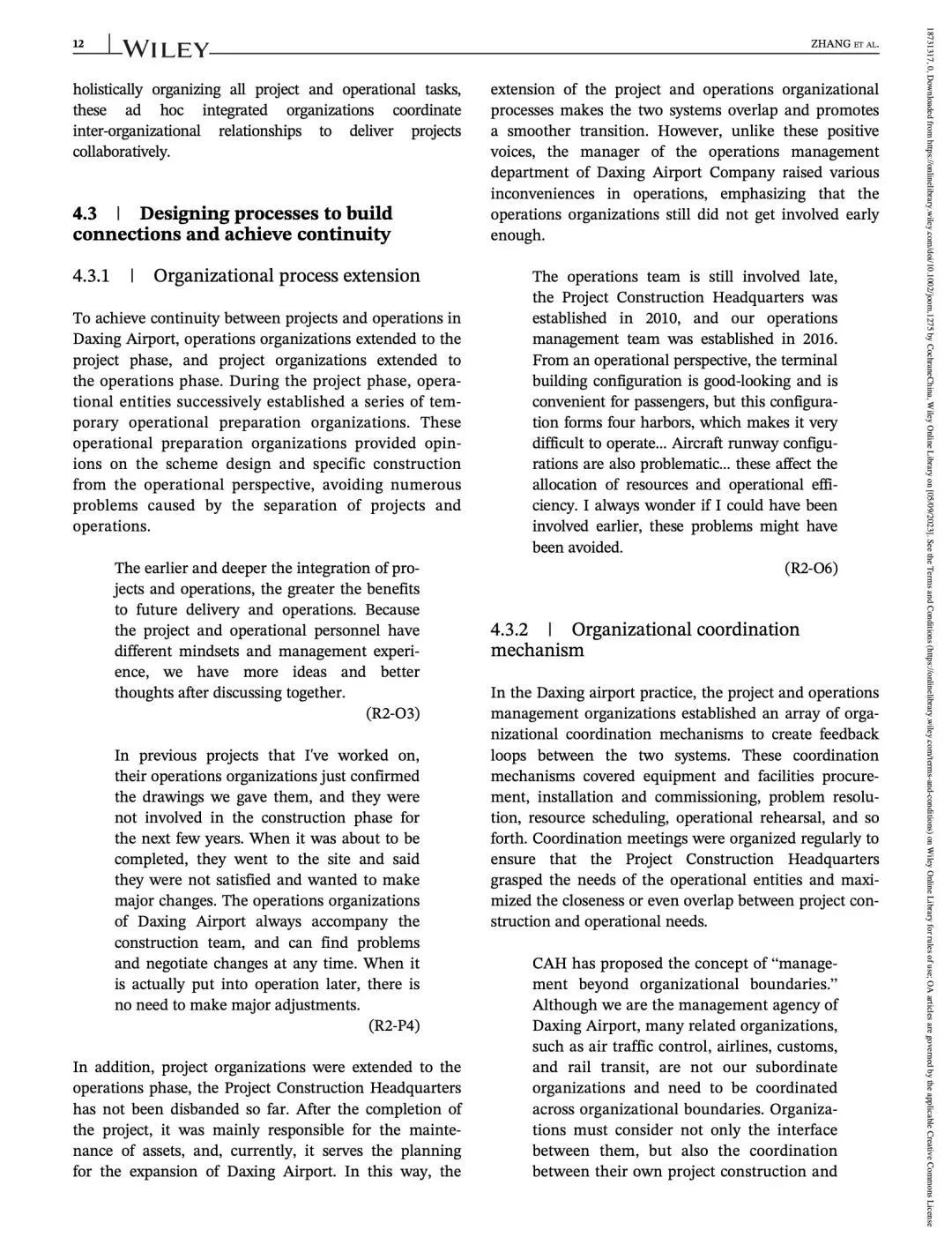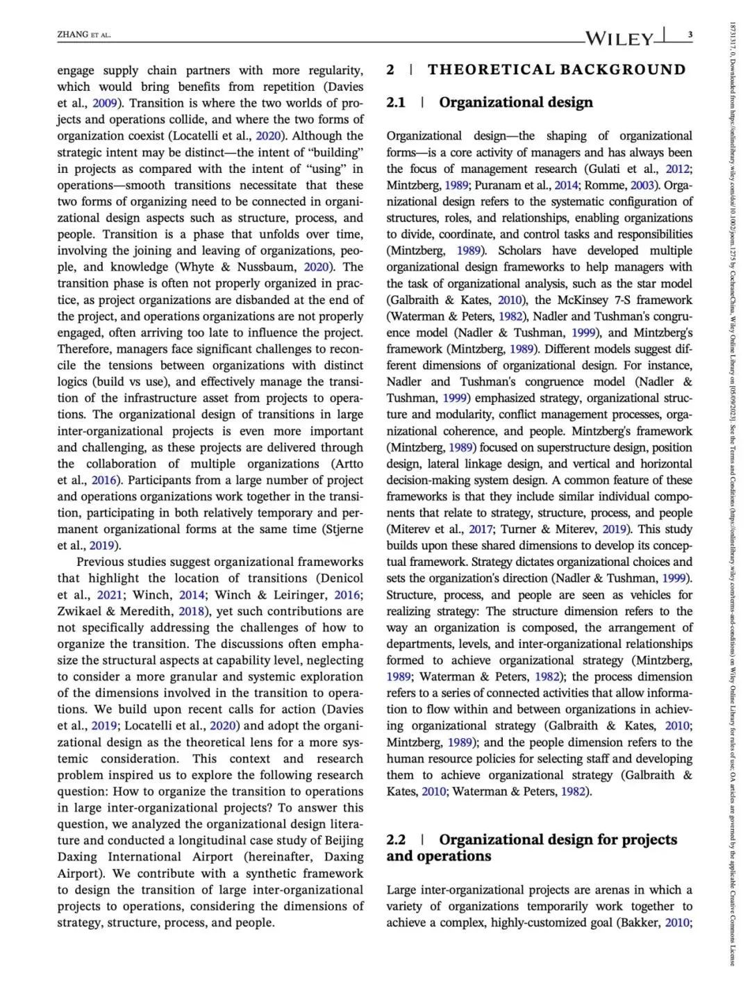 近日,同济大学复杂工程管理研究院在读博士研究生张馨月作为第一作者,乐云教授作为通讯作者的文章“Designing the transition to operations in large inter-organizational projects: Strategy, structure, process, and people”(设计大型跨组织项目向运营的过渡:战略、结构、过程和人员)被管理学领域国际顶级期刊 Journal of Operations Management(UTD 24)录用并发表。