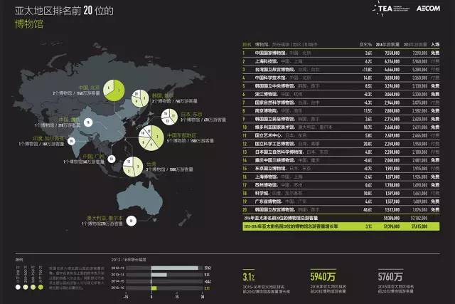 亚洲的博物馆业近几年正处于快速发展阶段,3.1%的游客增长率,明显高于2016年全球1.2%的平均水平。其中,中国北京国家博物馆更是首次成为世界上游客量最大的博物馆。展览设施的改善、新颖的主题展览活动、VR/AR技术等新型体验式设计,都是亚洲博物馆实现游客量大幅增加的原因。博物馆正在尝试通过提供定制化服务、沉浸式体验以及其他各种创新手段,努力重塑客户体验,以吸引更多年轻的游客。