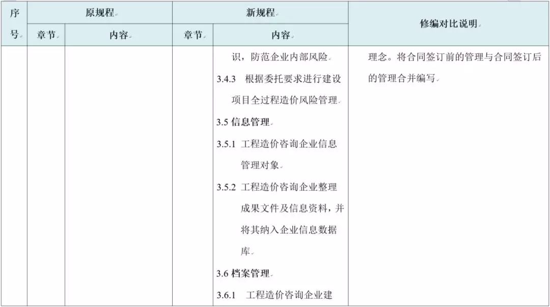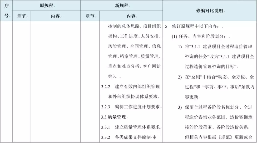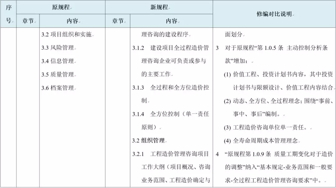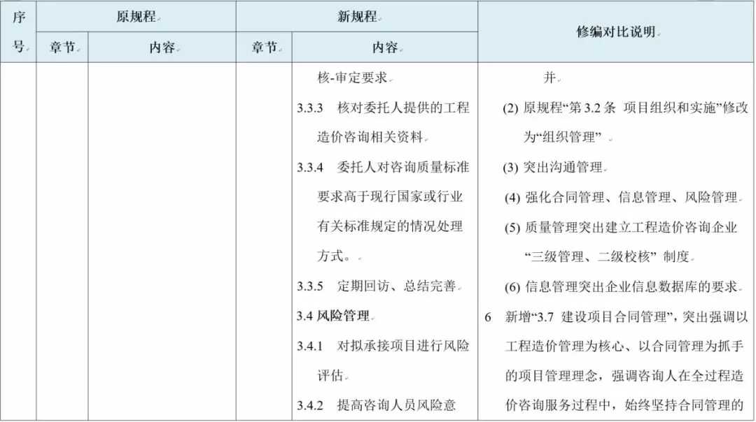 新规程更强调内部风险管理:在国内大部分地区尚未有职业保险、行业积极推行合伙制和终身责任制的背景情况下,控制专业服务风险要求工程造价咨询企业进行服务质量控制的同时,对于企业内部管理体系、人员综合素质重点把控。
