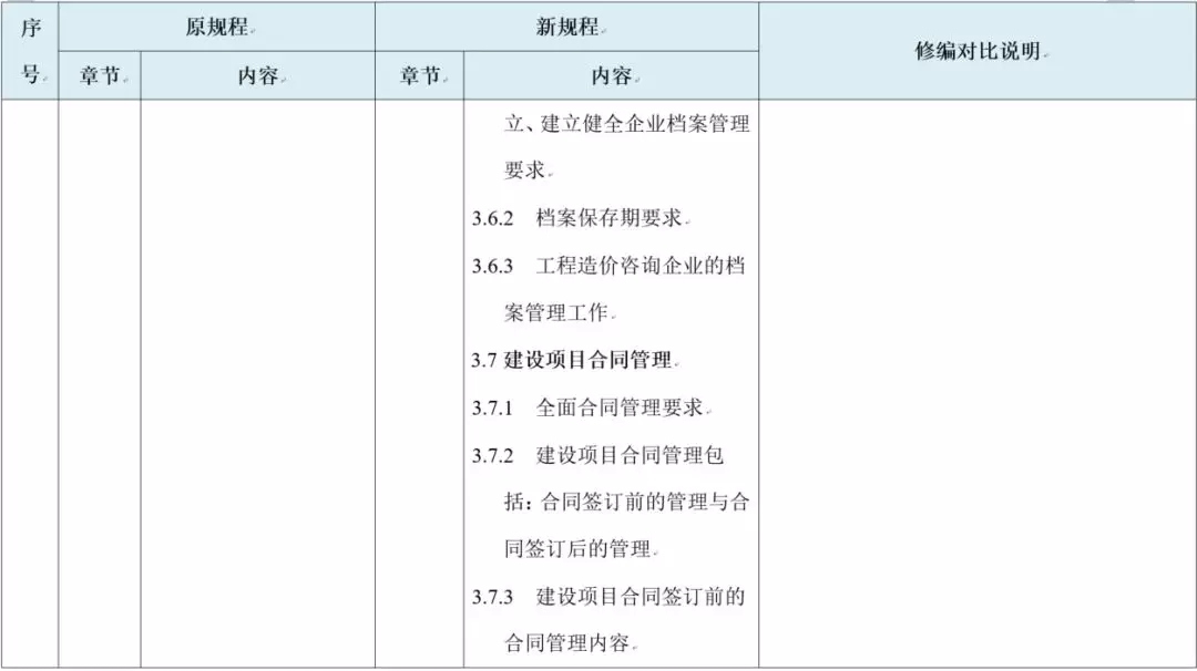 其中,招标策划、合同交底、合同台账管理、合同履约过程动态管理、合同终止管理是新规程新增或强调的内容。