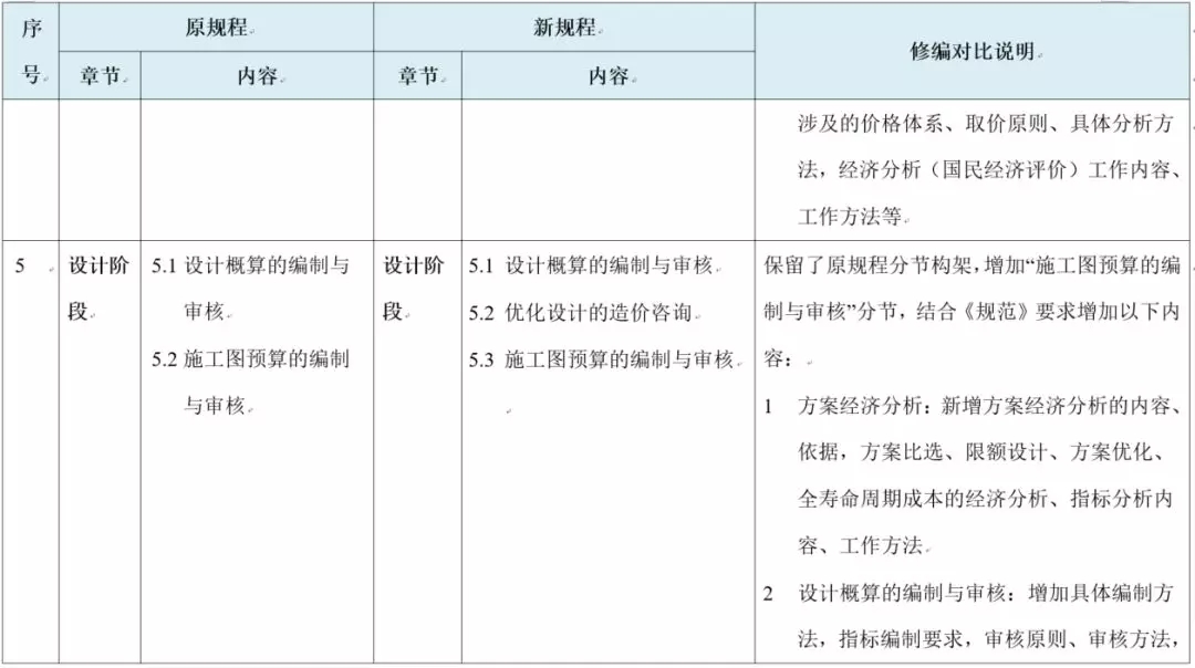 �解读:在“术语”章节中列出上述术语对应新规程新增“合同管理、招标策划、价值工程、限额设计、设计方案经济比选、全寿命周期成本、期中结算”等着重描写的内容。其中,对于“全过程造价咨询”、“全方位造价控制”首次具体解释:强调以工程造价管理为核心、合同管理为手段,对建设项目各个阶段、各个环节进行计价,建立由设计、施工、监理等各方参与的造价确定与协同管控机制。