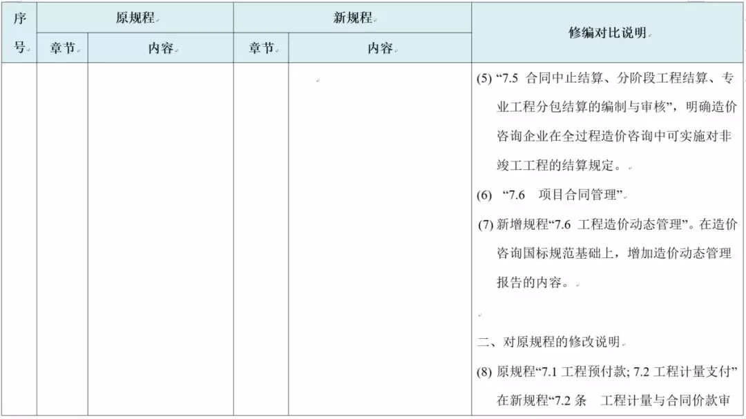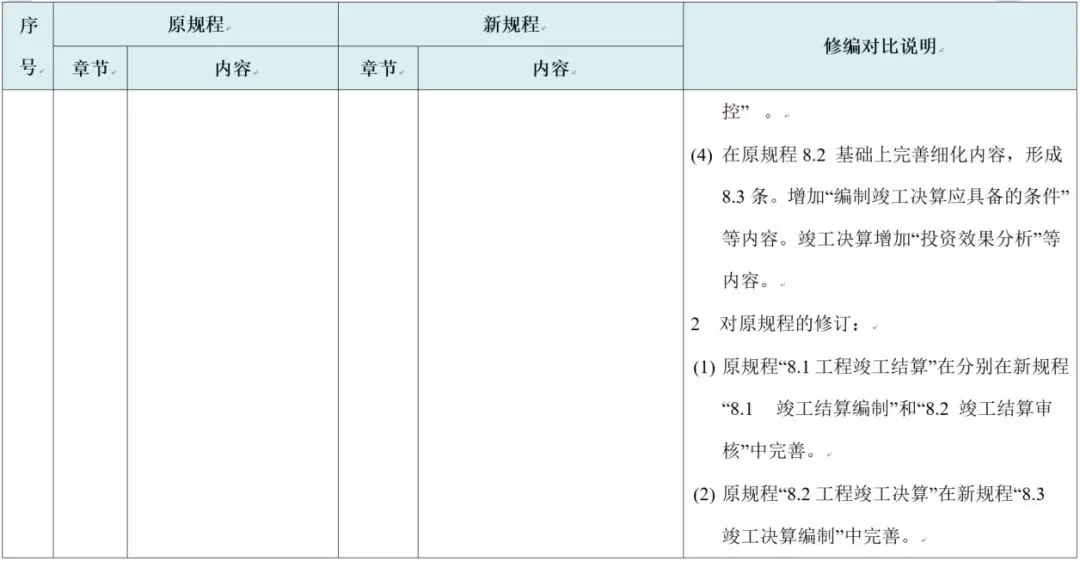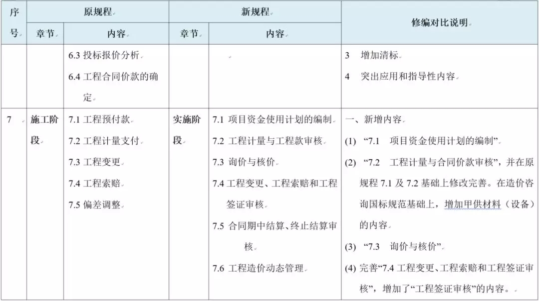 ② 终止管理是工程实施阶段由于违约或不可抗力等原因造成的合同终止所进行的管理行为。属于新规程新增的内容,也是完善针对不同情况所做的规程修订。